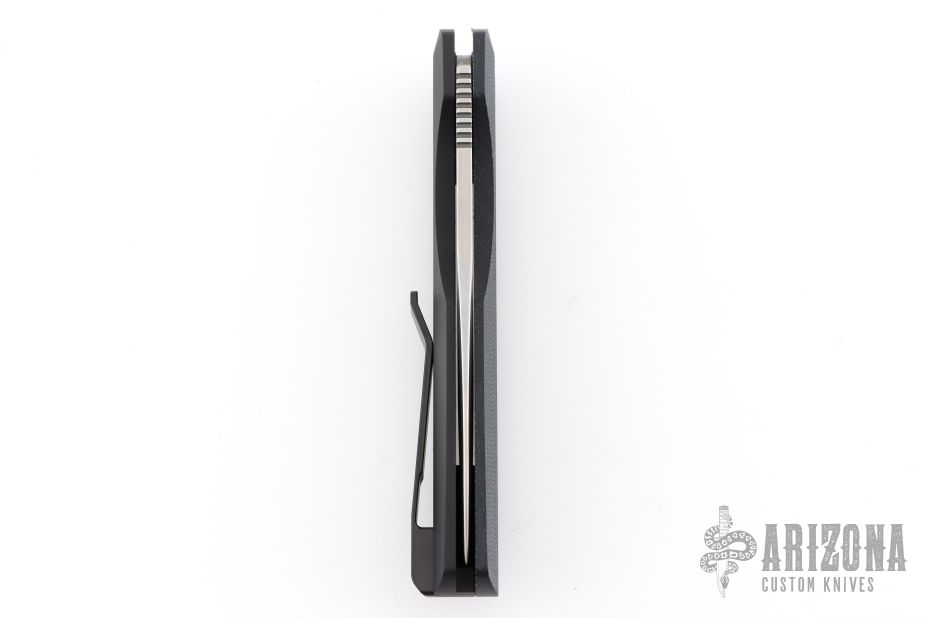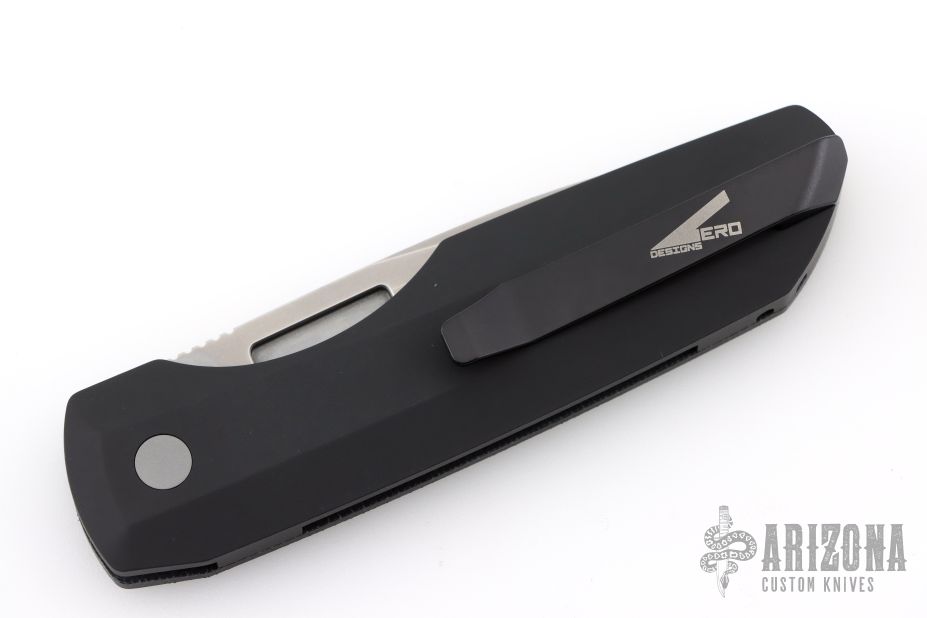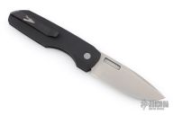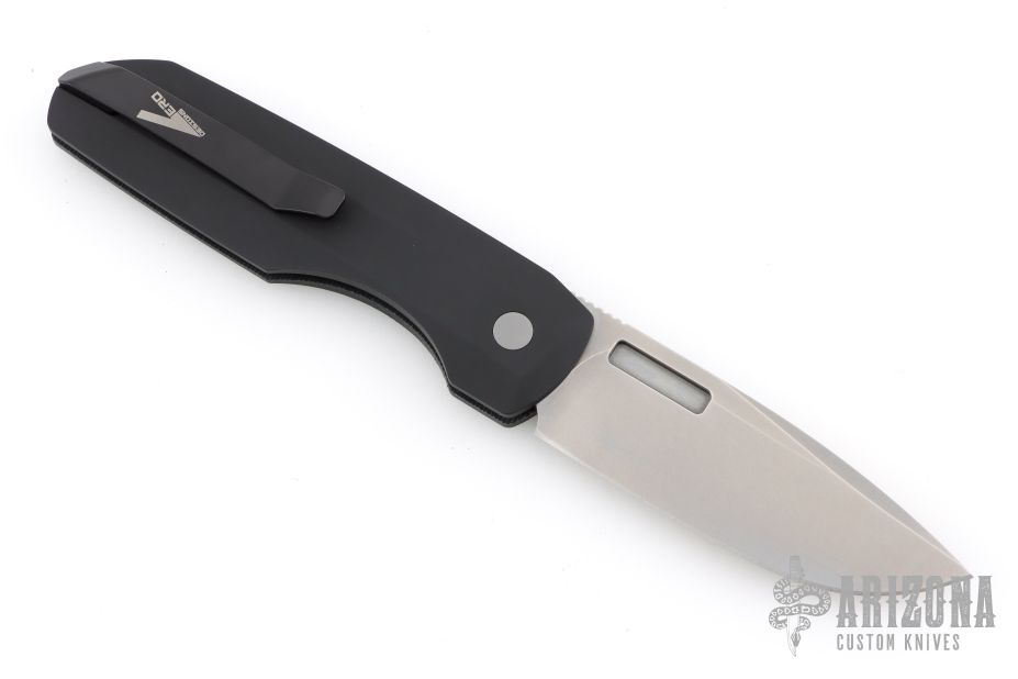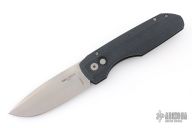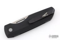 This Synapse by Pro-Tech is a Vero Engineering design. It has a stonewash finished blade with notched thumbrest. The handle has a black micarta and black aluminum frame, tip up black titanium clip with hidden screws. Comes with original box, pouch, and papers. Excellent condition.