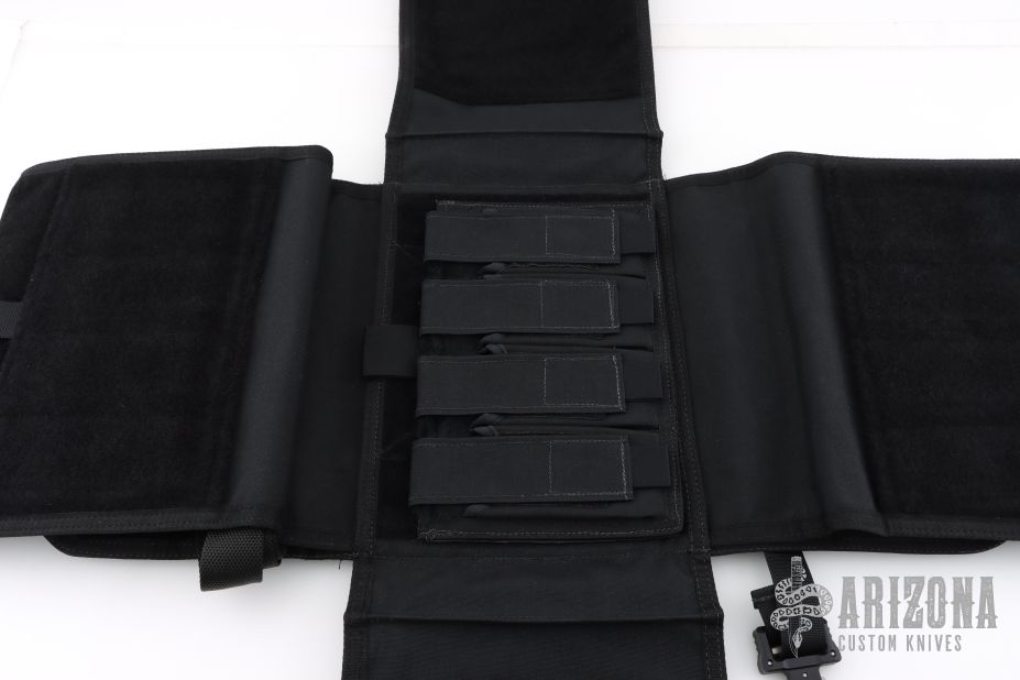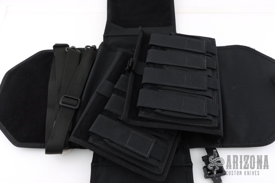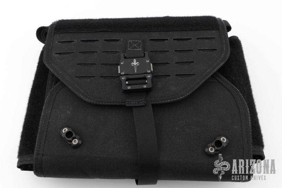 Marfione Custom BADMF Bag in Black. Has removable velcro panels that hold knives or magazines. Excellent condition. 12" x 9" x 3.5" closed and empty. Comes with a matching Magpul RLS rifle sling with Magpul QD Swivels