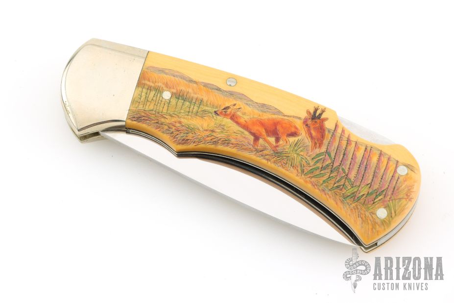 715 4 Star Lockback - Ivory Paper Micarta w/ Scrimshaw
