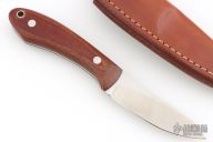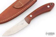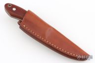 Wayne sold his first knife in 1985. "I am a one-man shop and make a limited number of knives per year. I use ATS 34 (154 cm) which is professionally heat treated to a Rockwell C Hardness of 58-60. Handle materials, such as stag, desert iron wood, African blackwood and curly/birdseye maple, when stained with chromic acid, are some of the better natural handle materials. All knives come with sheaths made from 9-10 oz. vegetable tanned leather. I make all sheaths and then wet form them to each knife. After the sheath is dry, it is dipped in oil and harness dressing to protect it from moisture and to help maintain its fit to the knife."