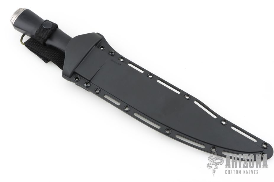 The very best in materials and workmanship is what makes performance like this possible. The blade is made of CPM-3V tool steel. It’s costly and difficult to fashion, but the resulting blade it yields is virtually indestructible. The handle also plays a big role in the overall performance. It has a double quillion guard, bolster, and pommel made of highly polished 300 series stainless steel and a gorgeous black linen Micarta handle. It will easily accommodate a wide variety of gripping methods while serving as a very formidable impact weapon as well.