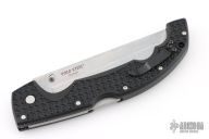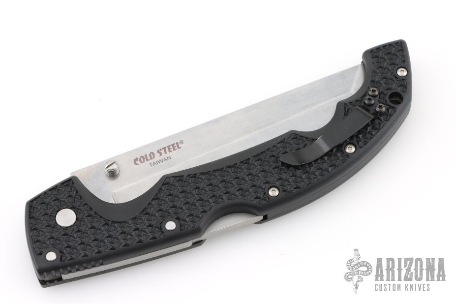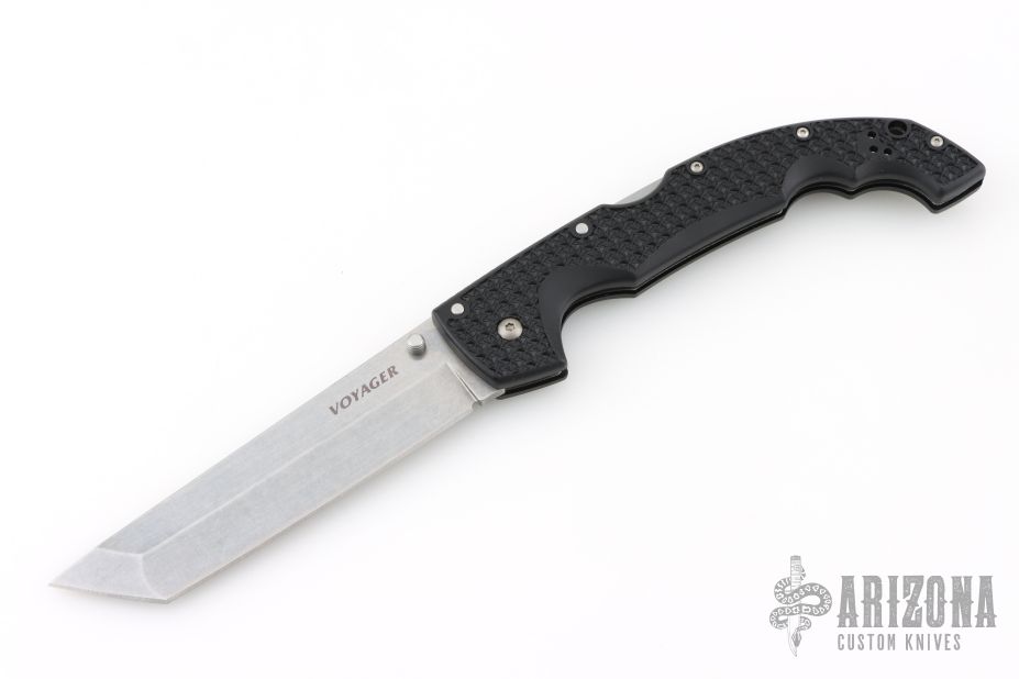 This Extra Large Voyager by Cold Steel features a stonewash finished blade with dual thumbstuds. The handle has Zytel scales with stainless steel backspacer, black stainless steel tip up clip. Excellent condition.