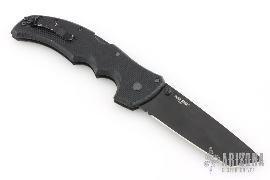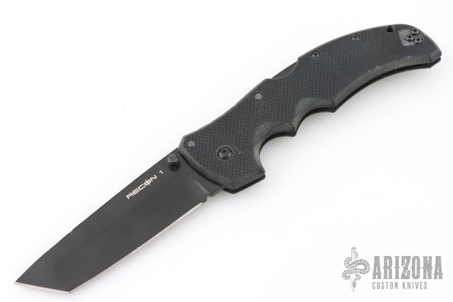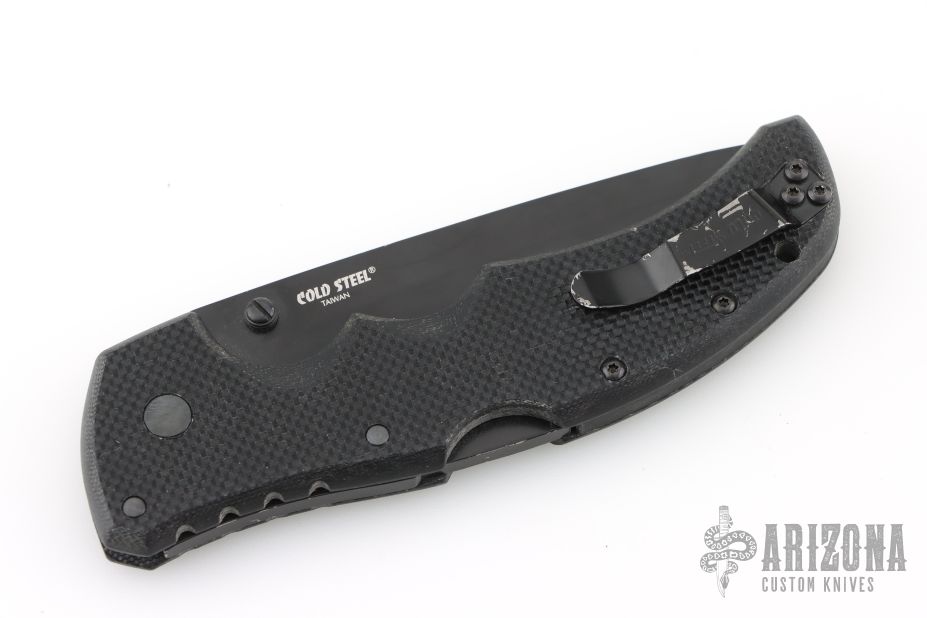 This Recon 1 folder form Cold Steel features a black tanto blade with dual thumb studs. The handle has black G-10 scales with a black stainless steel clip, left or right-handed carry. Has some scuffs and scratches, great condition overall.