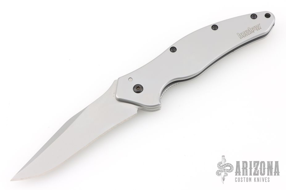 "The Kershaw Shallot is the largest of our "Onion" series... The larger 4 3/8" handle is built to fit a bigger hand. The Shallot features SpeedSafe® assisted opening technology for easy opening. Built for multi-tasking, you'll appreciate the great looks and top performance of the Kershaw Shallot." The handle is stainless steel with tip down stainless steel clip.