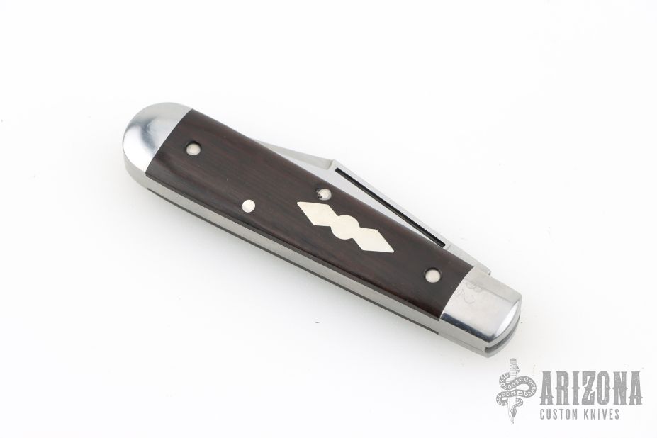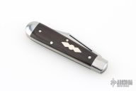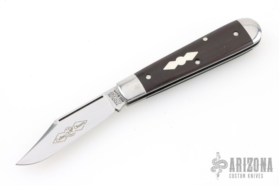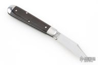 This slipjoint by Great Eastern Cutlery features a satin finished blade with long pull nail nick. The handle has stainless steel bolsters, African Blackwood covers with stainless steel liners/pins, steel spring. Has half-stop.  Comes with original tube and paper. Excellent condition.