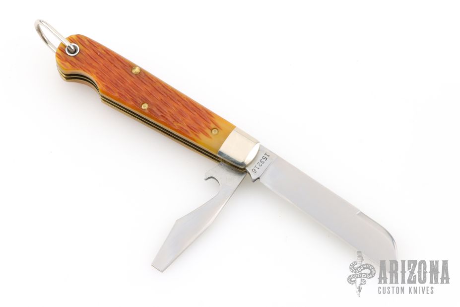 Home Products 153216CL Tidioute Beer Scout Knife - Golden Ale Jigged Bone