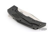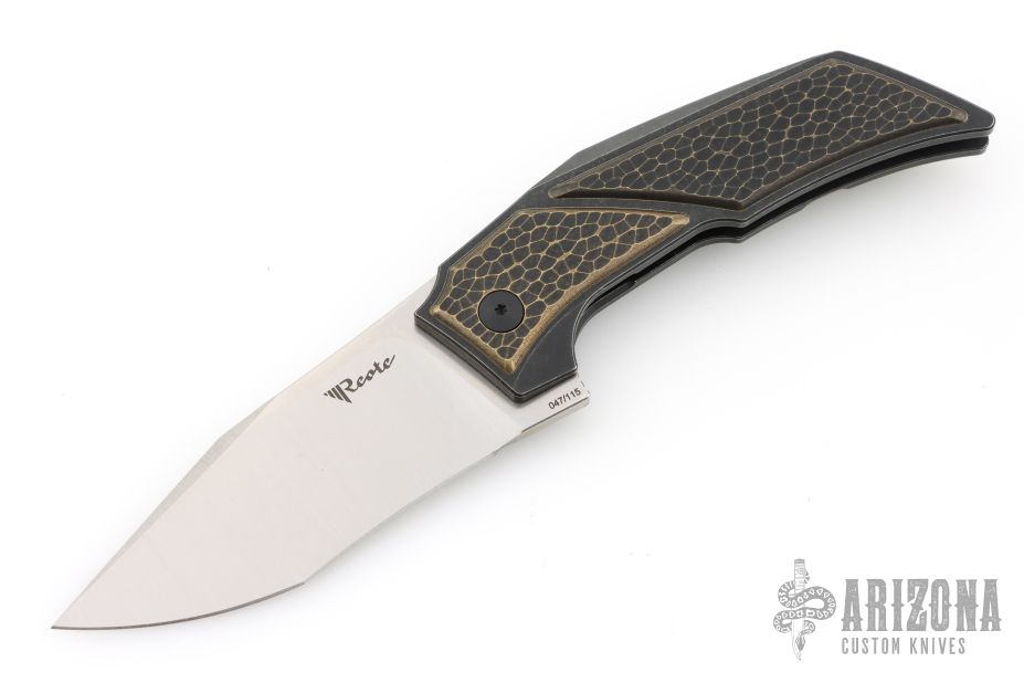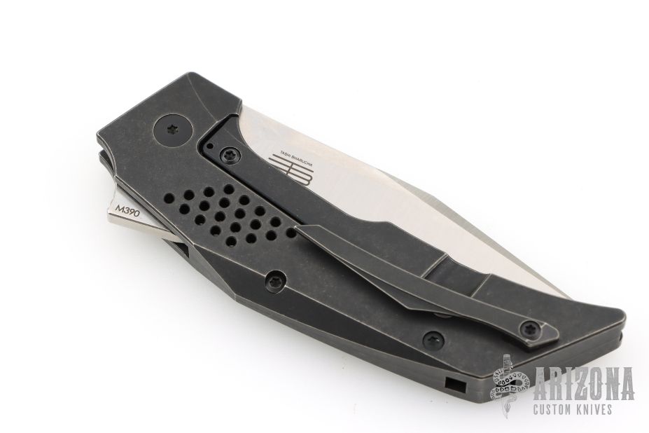 Experience Reate quality in a scaled down EDC friendly size with the Tashi Bharucha designed T3500. This T3500 model showcases a bead blasted titanium handle with textured brass overlays and a satin finished recurve blade. Ceramic bearings facilitate smooth and fast deployment of the highly effective blade. This sturdy T3500 folding knife offers distinctive Bharucha style and a pocket friendly design. Features: Low-profile blade flipper offers comfortable pocket carry and rapid one-hand deployment. Bohler M390 steel offers high corrosion and wear resistance. Titanium pocket clip for convenient tip-up carry. Titanium hardware. Includes original box, papers and padded zippered case. #047/115. Excellent condition.