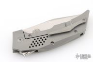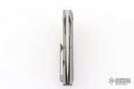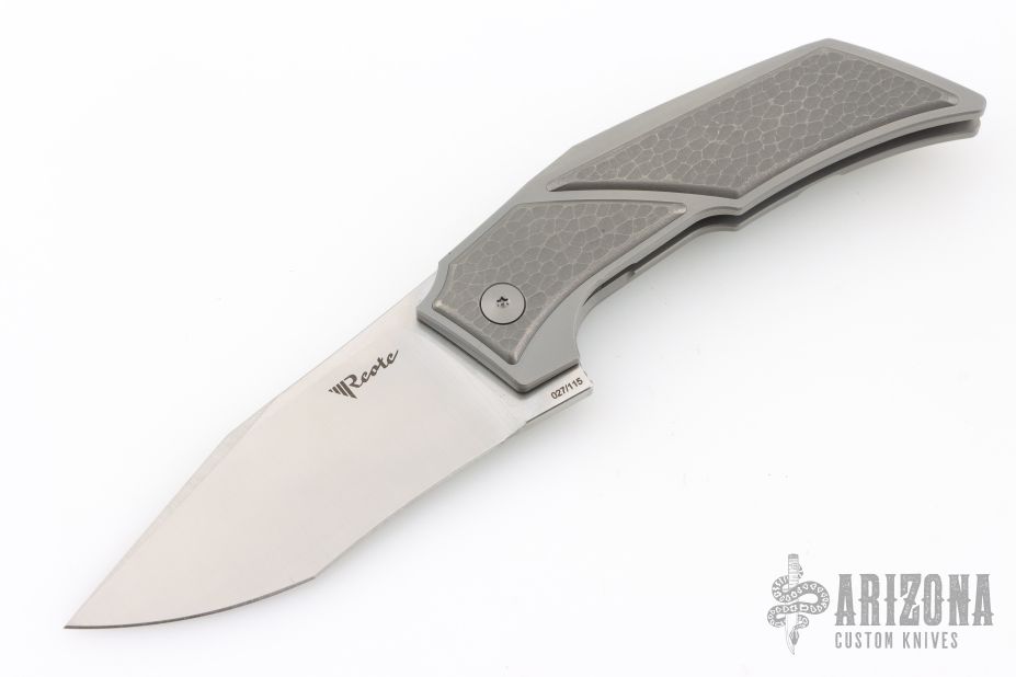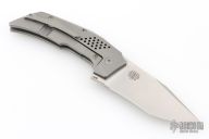 Experience Reate quality in a scaled down EDC friendly size with the Tashi Bharucha designed T3500. This T3500 model showcases a bead blasted titanium handle with textured brass overlays and a satin finished recurve blade. Ceramic bearings facilitate smooth and fast deployment of the highly effective blade. This sturdy T3500 folding knife offers distinctive Bharucha style and a pocket friendly design. Features: Low-profile blade flipper offers comfortable pocket carry and rapid one-hand deployment. Bohler M390 steel offers high corrosion and wear resistance. Titanium pocket clip for convenient tip-up carry. Titanium hardware. Includes original box, papers and padded zippered case. #027/115. Excellent condition.
