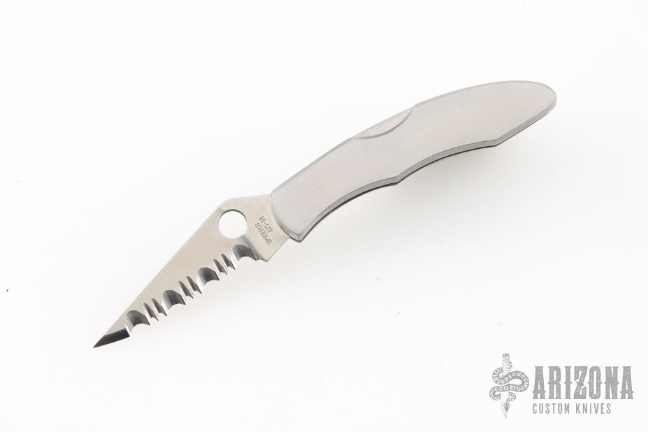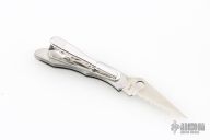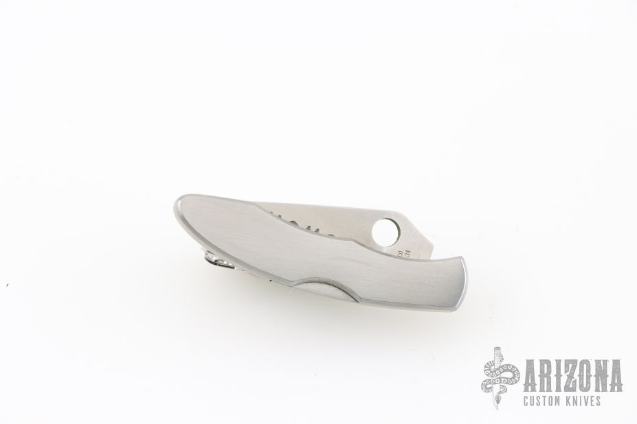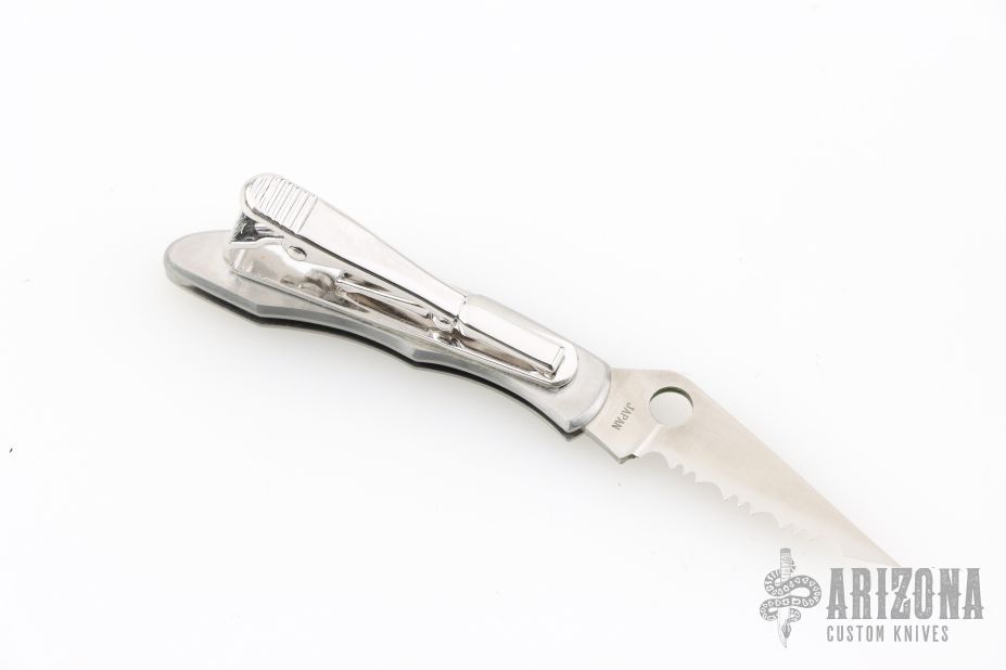 This tie clip has a small stainless steel spyderco lockback. Comes with original blue jewelry box with spyderco label sticker on the bottom. Blade Steel: ATS-34