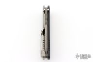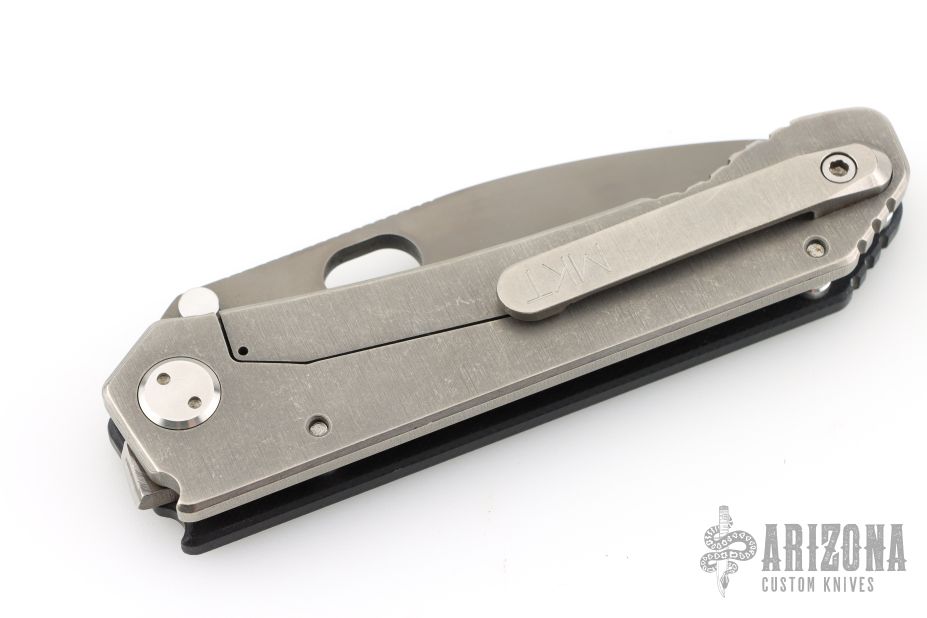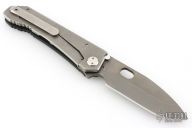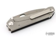 This 187 DPT Drop Point by Medford Knife and Tool features a satin finish drop point blade with notched thumbrest and thumbhole. The handle has a stonewashed titanium frame, g10 scale, and titanium clip. Nice blade seating, detent and lockup. Comes with original zipper case and dog tag. Has some light scuffs on the clip. Excellent condition.