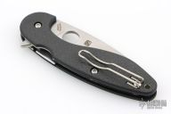 This Silverax Pln by Spyderco features a satin finished blade with thumbhole and flipper. The handle has carbon fiber scales with stainless steel inlaid liners, tip up reversible stainless steel clip. Comes with original box and papers. New condition.