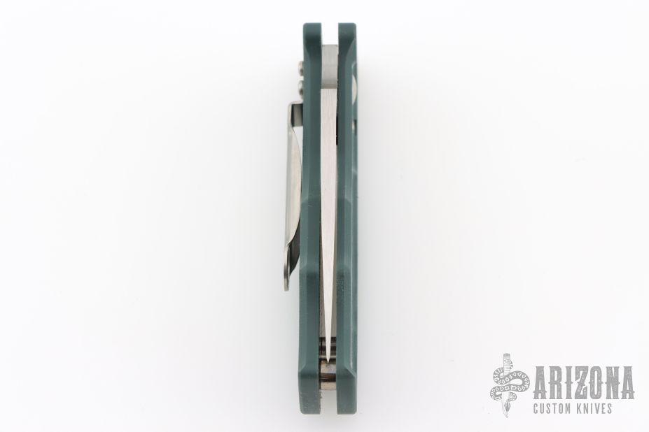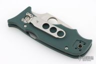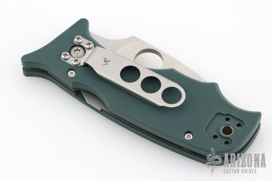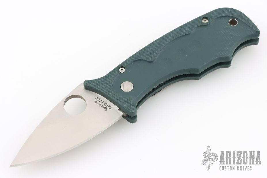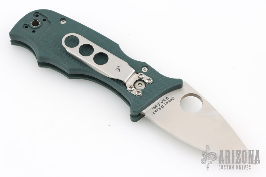This Lil Temperance by Spyderco has a satin finished blade with thumbhole. The handle has green G-10 scales, stainless liners and tip up or down reversible clip. Comes with original box and papers. New condition.