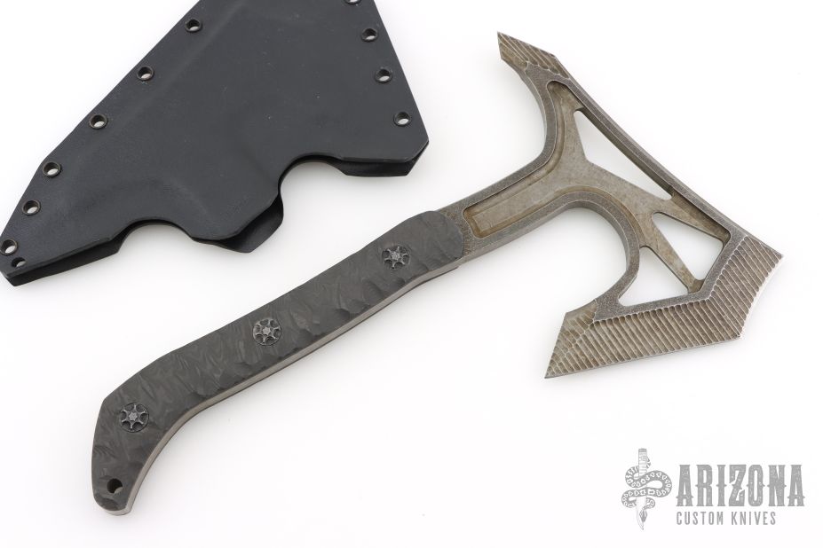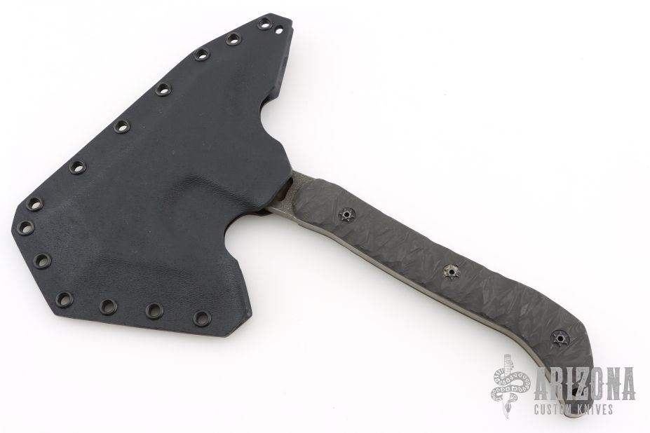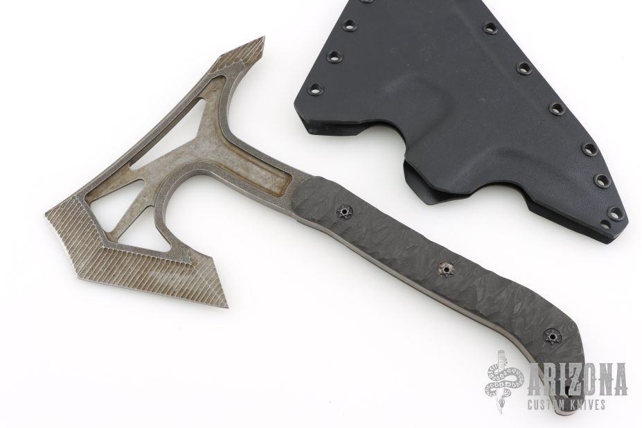 The textured handle scales are crafted from Uni-directional carbon fiber. The rest of the piece is made from a solid piece of S7 tool steel.