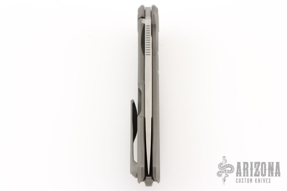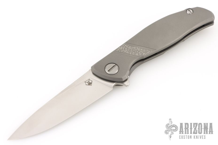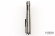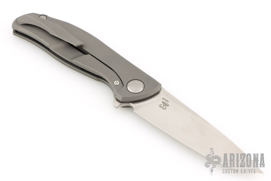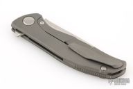 This F95 Hydronian by Shirogorov Knives features a tumble/polish blade with a notched thumbrest and flipper. The handle has a bead blast finished, milled titanium frame with matching titanium backspacer and tip up clip. Nice detent, lockup and blade seating. Has MRBS. Comes with original box, cloth, and COA. Has a couple light scuffs, excellent condition.