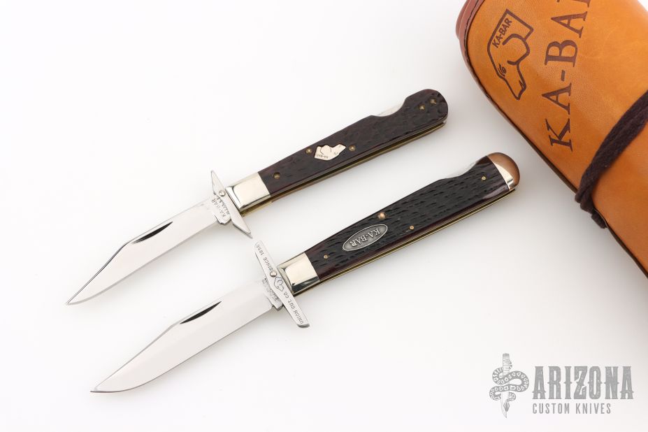 Home Products Pair of Ka-Bar Swing Guard Lockbacks and Leather Knife Roll