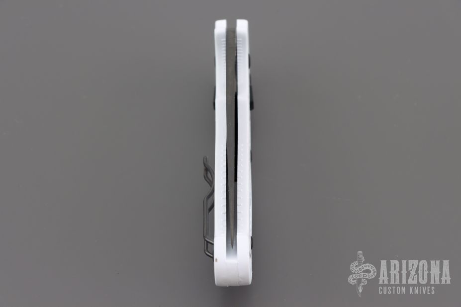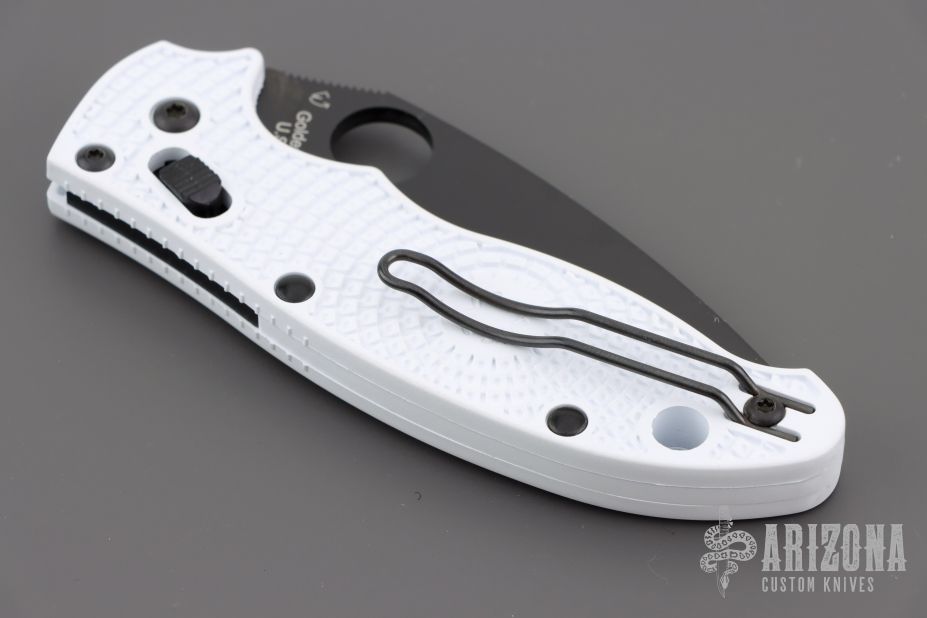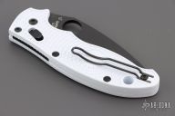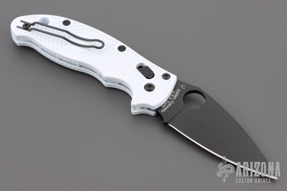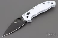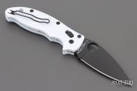 This Spyderco Manix 2 is from a sprint run with Rex 45 blade steel. Has a black finished blade, thumbhole and notched thumbrest. The handle is comprised of white FRN. Lanyard tube in pommel. Comes with original box and papers. Has a a couple light scuffs on the blade, otherwise excellent condition.