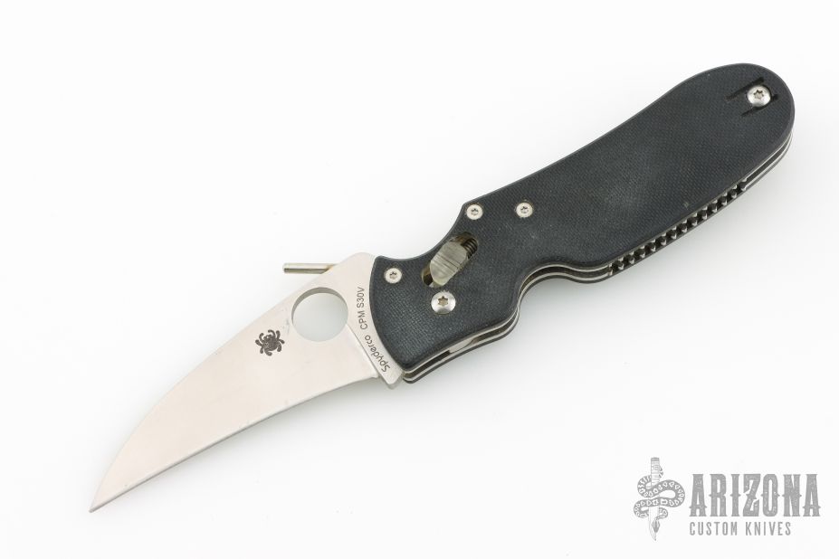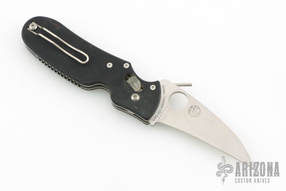 In the Philippines Visayan dialect, the literal translation of the word Pikal means to rip. In the U.S. the term Pikal remains relatively new but a company called Shivworks is making headway in its introduction to the American market. Its English definition is twofold: It is a rising martial arts genre and the name of a Spyderco knife designed to accompany this art form. As a self-defense platform, Pikal is carried out holding a knife in reverse grip with the sharpened edge facing inward toward the user. Pikal’s objective is not flowing drills with your opponent but rapidly and effectively striking and surprising. The Spyderco C103 P’Kal, offers features specific to this activity but these same features also translate well for everyday carry. The CPM S30V plain edge blade curves to a point. When held with the tip facing downward it feels natural and comfortable making pulling, downward cuts. Protruding from the top of the blade’s spine is a removable Emerson Opening feature. The device popularized and patented by Ernest Emerson of Emerson Knives, functions by catching the back of a pant’s pocket when drawing the knife, opening blade in the same motion. Spyderco’s P’Kal is designed for reverse grip use with a formidable choil on top of the handle that holds the little finger when gripping, affording better dexterity and control. Spyderco’s patented Ball Bearing Lock® sits above and behind the blade. The ball bearing component is housed in a plastic cover that’s accessible for both left and right hand opening. P’Kal clips in a pocket with a steel wire clip and carries tip-up. Made in Golden, Colorado U.S.A Earth.