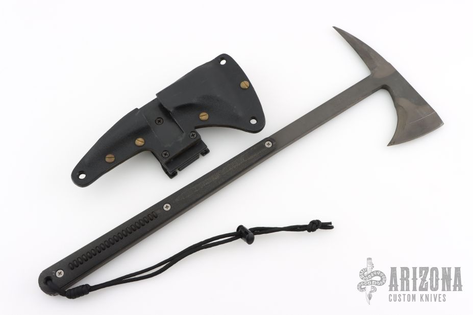 The Vintage Eagle Talon is the tomahawk that started it all. It was the first all-steel integral designed tomahawk and has been the keystone for all other RMJ tomahawks. It was inspired by 18th Century French and Indian War tomahawks that our designer, Ryan, had been emulating for many years. In the Spring of 2001, Ryan was commissioned by members of the USAF 820th Security Forces to design a tomahawk that featured 18th century lines and 21st century engineering; a tomahawk for modern combat use. Work began, and by the fall of 2001 the Eagle Talon Special Forces Tomahawk was being used in Afghanistan. Why a Tactical Tomahawk? The tomahawk has served as an effective field tool and weapon for over 300 years, and the physics behind the tomahawk design give it many advantages over a knife. The user can choke up on the grip to use the tomahawk like a more traditional knife, or when held in a normal grip, the cutting power and strike force is multiplied several times over due to the leverage created by the length of the handle. Great for: Breach | Utility | Emergency / Safety Tool | Preparedness Kit Specifications.