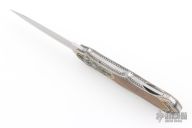 "It started with a piece of steel and some micarta in the back of my father's shop in 1975. I suppose I would be horrified by that first knife now. It was a rough piece of work with more things wrong than right, but that first ungainly knife did ignite something in me, and that something still burns over 45 years later. Like everything, my interests have evolved over time. The early 90's were a turning point in my knife making, with my focus turning toward folding knives and the interframe type of knife. Adding stone inlays to my knives required that I add a new set of skills to my knife making, and rekindled my passion as well. Time marches on, and two decades later I find myself once again evolving, reworking my designs to include the larger pocket knives that my customer's are now asking for. Whether fixed blade or folding, making knives is what I do."