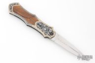 My career in custom knifemaking began in 1986 when I met Buster Warenski who taught me the art of engraving. I was taking an engraving class, which he taught, and later that year we were married. Within one year I was engraving every knife we made and also engraved for many other knifemakers and customers all over the world. Over the years I worked in many areas of knifemaking helping with knife designs and also making many parts of our knives, as well as doing all the embellishment on them. We had a great marriage and awesome relationship until he was so unexpectedly taken away forever. He used to joke that he was going to teach me how to grind the blades so he could just retire, but I quickly let him know that there was no way this was going to happen. I often wish now that he had taught me his techniques to grind the knife blades. After Buster’s passing, I had a strong desire to make knives and continue to make the great art knives that I had worked on and had a unique partnership with for the past 20 years. A past student of Buster’s, Curt Erickson, had offered to help teach me to grind the way Buster had taught him. He was the only person Buster had really tutored in knifemaking and I graciously accepted his offer. After working with Curt and with his help I won the Buster Warenski award for the best Art Knife at the New York knife show in February 2006. We were married in 2006, and now work together in a new and exciting partnership in knifemaking. There will be many fabulous knives in our future together as we are dedicated to making some of the best art knives possible.