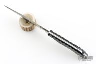 Fred Perrin makes fixed blades and folders of every kind; Forges Damascus steel or uses stock removal techniques. In any case, he always does his own heat treatment and tempering. As far as his background in the martial arts, Fred has spent two years in the French Army Commandos and worked as a bodyguard. He was a national Tae Kwon Do champion and a European full contact stick-fighting champion. He has trained in Kali, and God knows what else. His weapon of choice is the butterfly knife, in which he excels. Aside from being France’s most famous and controversial knife maker and tactical writer, Fred runs a school where he teaches a very unique blend of knife, stick, and empty hand techniques. He is often contracted by France’s elite police units for seminars. He also provides some agencies with custom-made weapons for ballistic testing.