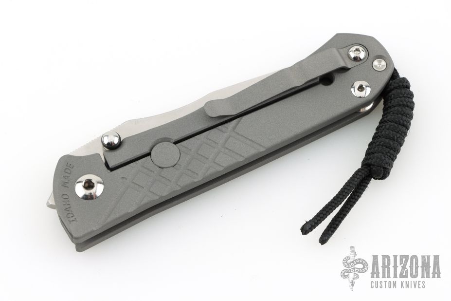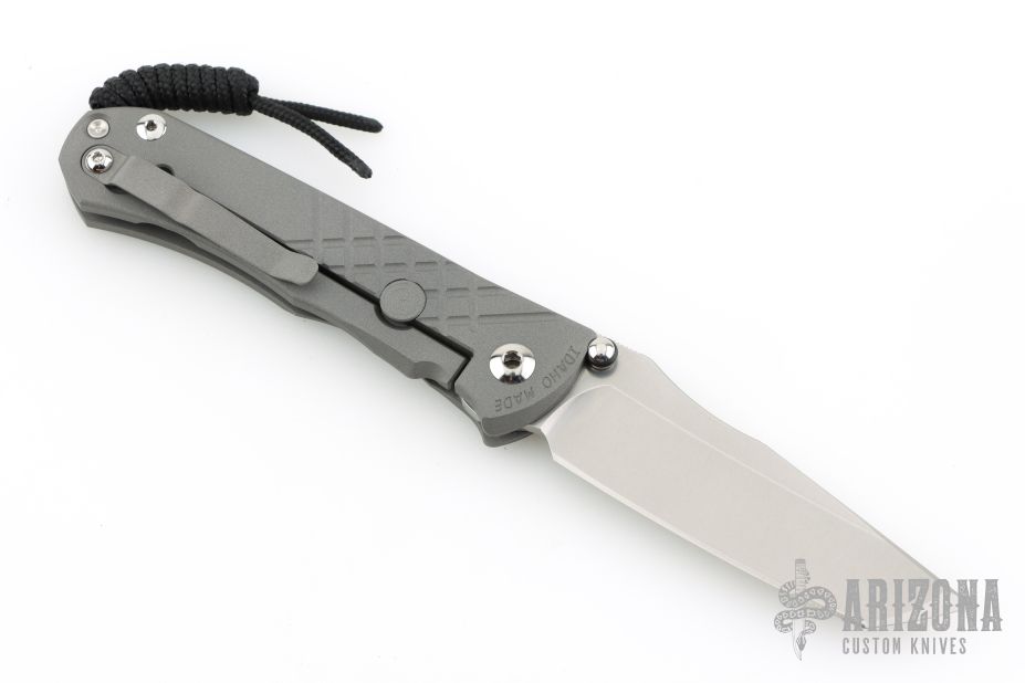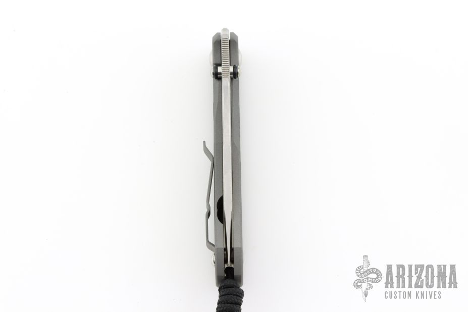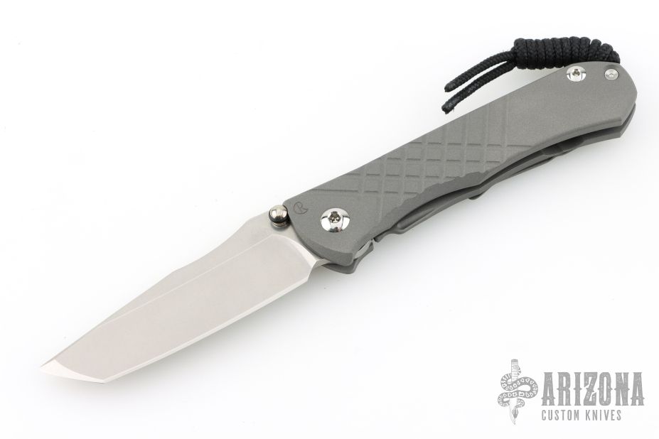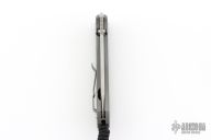 This Unumzaan from Chris Reeve Knives features a stonewash finished tanto blade with dual thumb studs and notched thumbrest. The handle is comprised of blasted and milled titanium with matching tip up clip. Lanyard pin with lanyard and spacer bead in pommel. Comes with original box, papers, cloth, lube and tool and COA dated November 6, 2025. New condition.