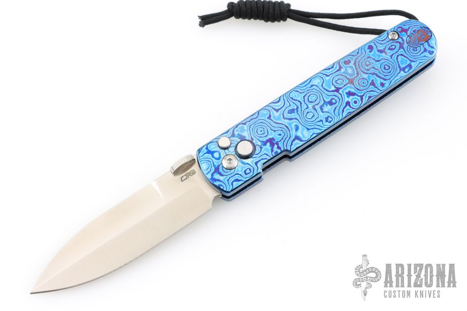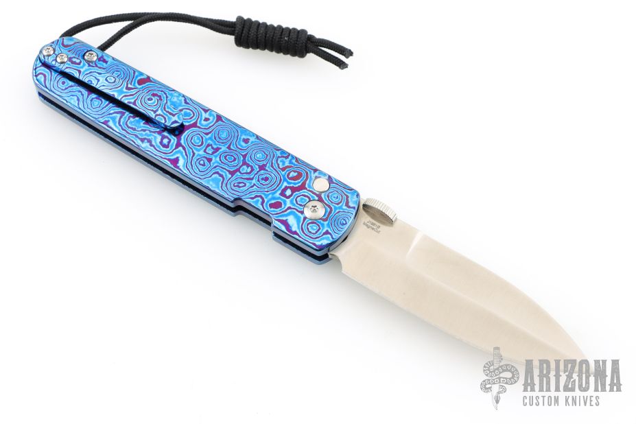 This version of the Locust gets the full EDC treatment, Premium titanium Damascus scales.