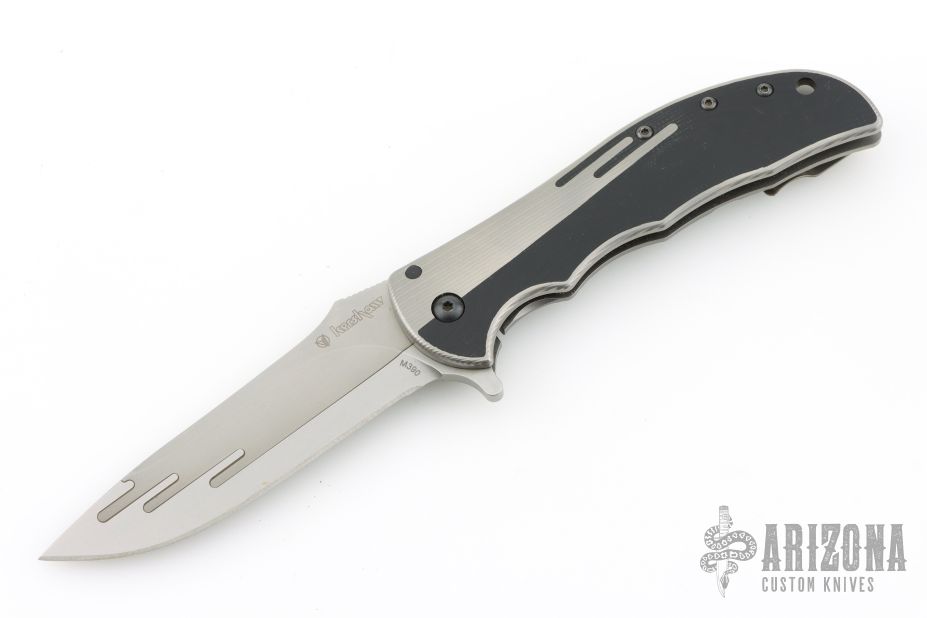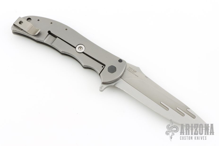 This Volt by Kershaw is an RJ Martin design, it features a composite blade with M390 edge, notched thumbrest. The handle has a titanium frame with black G-10 inlay, lockbar stabilizer, and tip up low ride clip. Nice detent, lockup and blade seating. #070 on flipper. Has a couple light scuffs, otherwise excellent condition. Has "XXX" on the blade, making it a factory second.