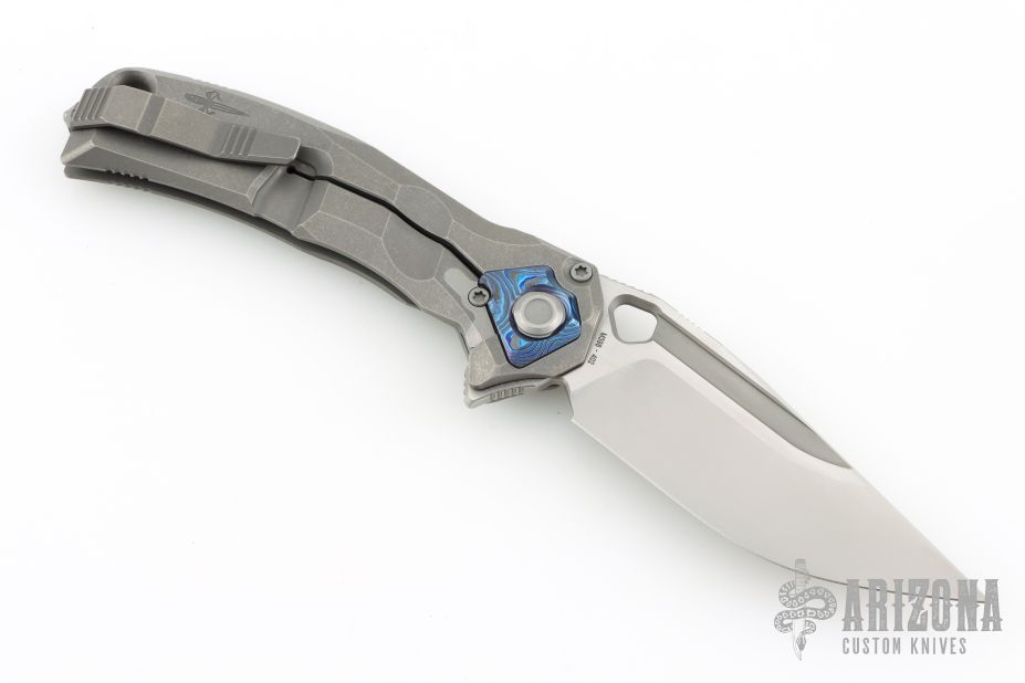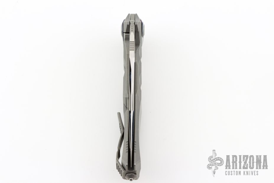This version will have a CKF wash M398 blade with a mirrored swedge. It will have a one piece integral titanium handle with ZircuTi accents around the pivot, shown in the photos as a brown color. The glass breaker is removable, if you prefer, and it comes with a screw to put in its place if needed.