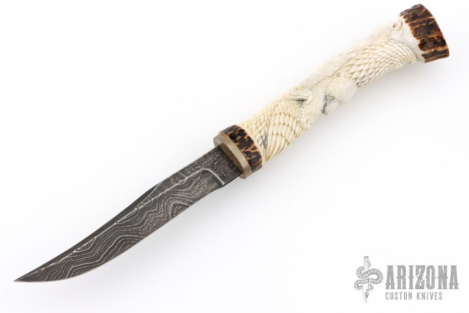Damascus and Carved Stag Hunter