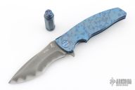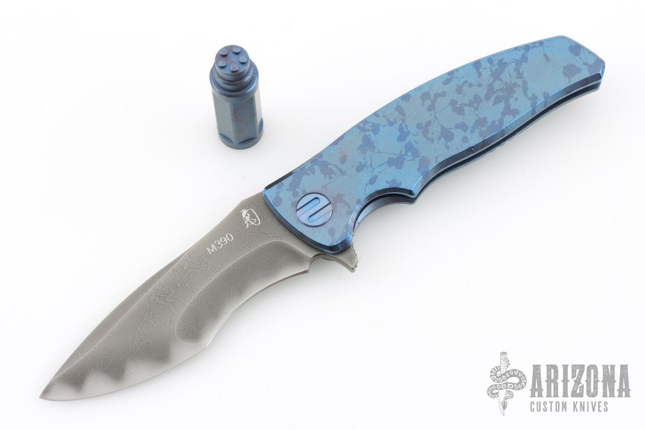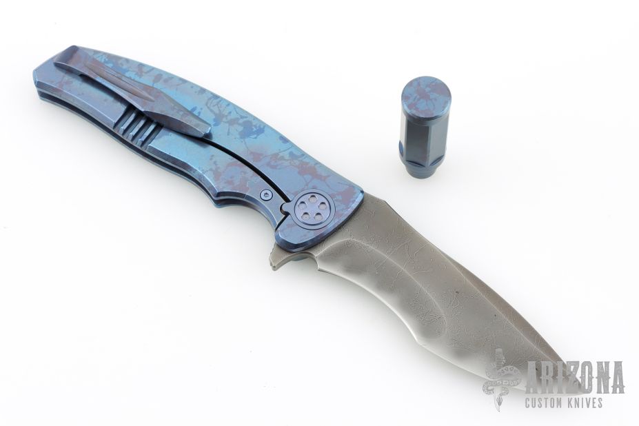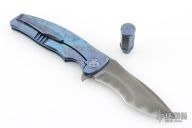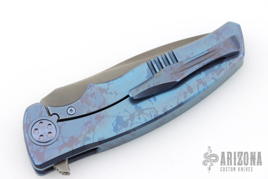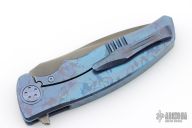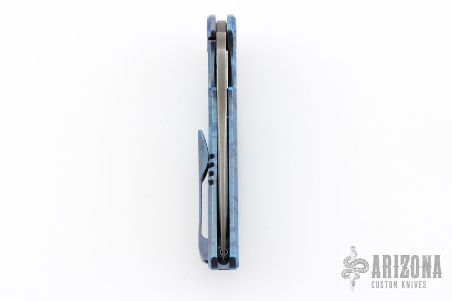 This Subara framelock flipper by Kiku Matsuda features a recurve blade with flipper. The handle has an anodized and tumbled titanium frame with tip up clip and anodized titanium hardware. Rides on bearings, nice detent, lockup and blade seating. Comes with maker's velcro case and pivot tool. Excellent condition.