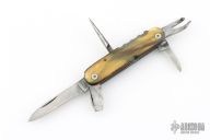 This Antique Slipjoint by Puma is also marked Lauterjung & Son, based on my research, that should make it between like 1900 and 1920, i'm sure it could be narrowed down further. Please let me know if i am mistake. It features satin finished blades with nail nick. The handle has buffalo horn covers with brass pins and aluminum liners. Has some scratches and patina, has been used and sharpened, otherwise good condition for its age.