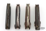 4 - Queen Cutlery Company - Mirror polished blades, nickel silver bolsters, black scales, brass liners and steel springs. Lanyard bail. Has a couple small pitts, a little oxidation, has some scratches, otherwise good condition.