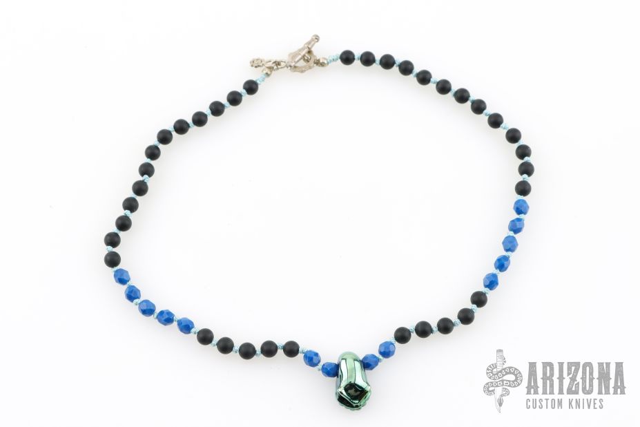 Vintage Line Necklace - Black Agate/Blue w/ Glass Curby by Starlingear. .925 toggle clasp; 18" overall, 9" diameter. Comes with labeled plastic bag. Excellent condition.