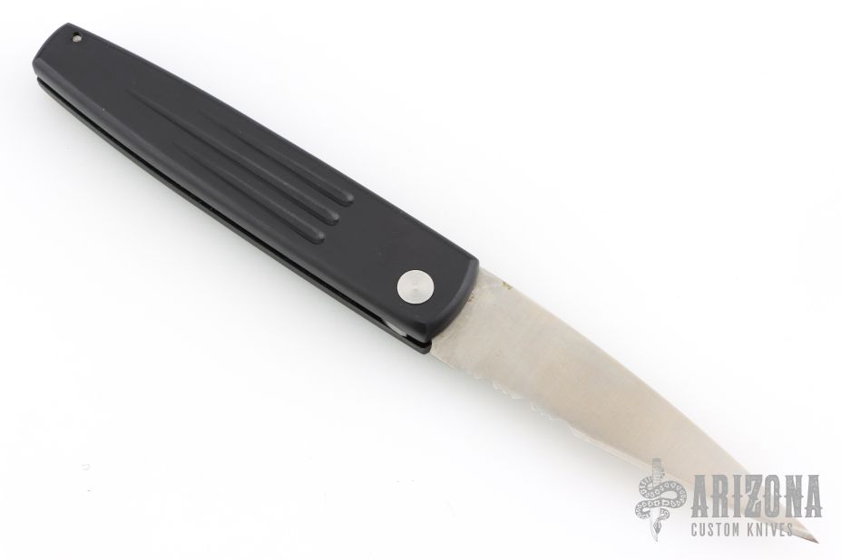 This Spike automatic by Benchmade Knives features a satin finished partially serrated blade and black anodized aluminum frame. Excellent condition.
