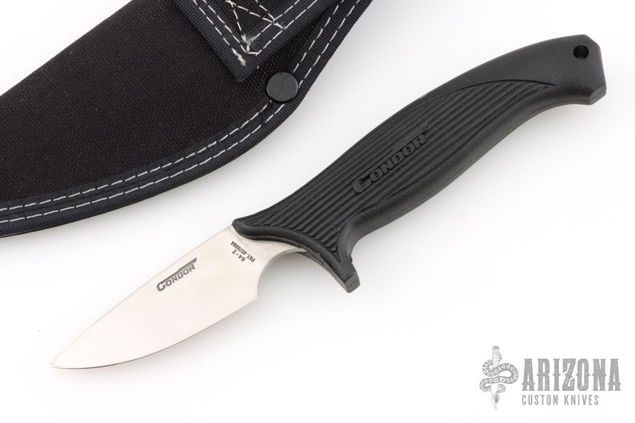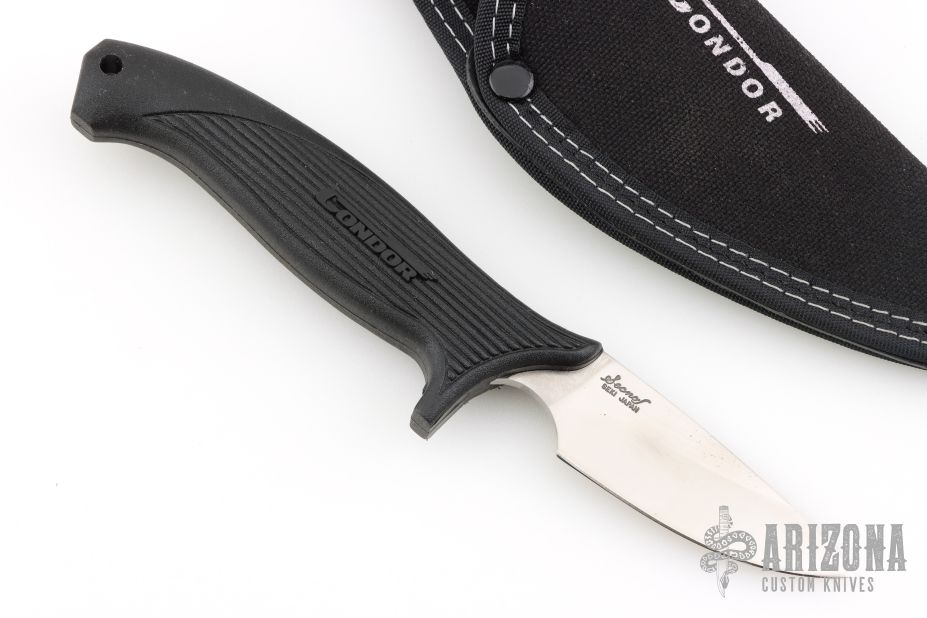 This Model 84-Z by Condor USA features a satin finished drop point blade with .116" blade stock and .976" blade depth, hidden tang construction. The handle has a black composite grip. Comes with a nylon sheath and original box. Has some light scratches, otherwise excellent condition.