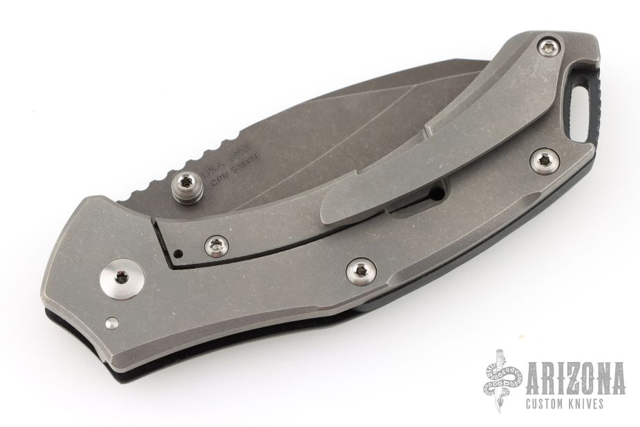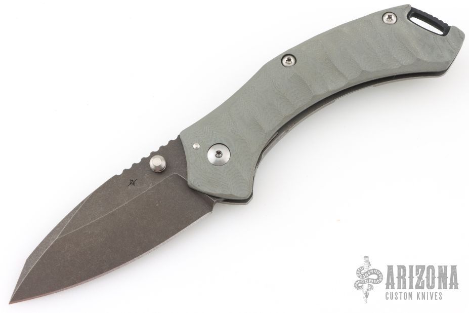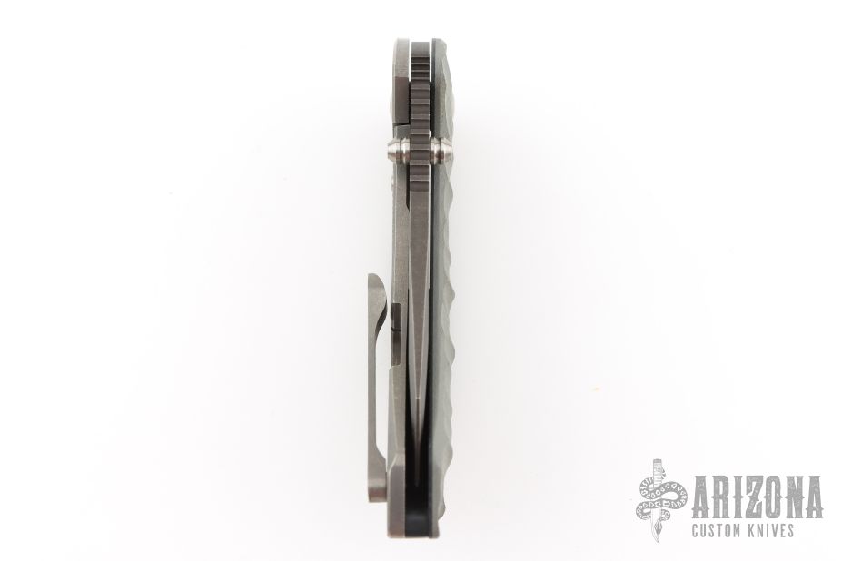 - Textured gray G-10 and titanium handle.