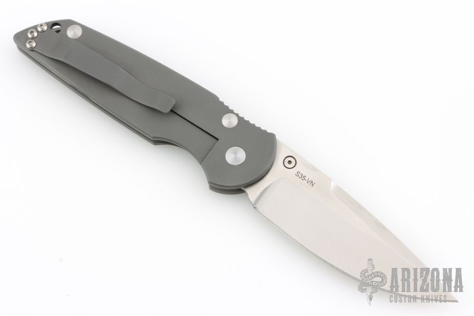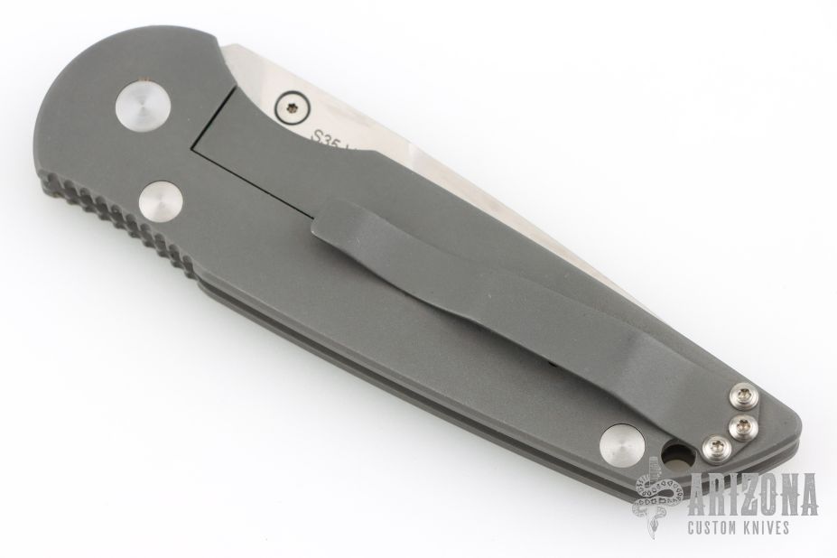 The custom TR-3 Integrity folders are built in very small batches from the highest possible quality materials. Solid titanium frames, custom hardware and thumb studs, the fit and finish is superb! Smooth one hand opening and the solid locking of the .125" titanium frame, even the pocket clips are custom made titanium. Has a couple light scuffs, otherwise excellent condition. Comes with original box, sheath and papers.