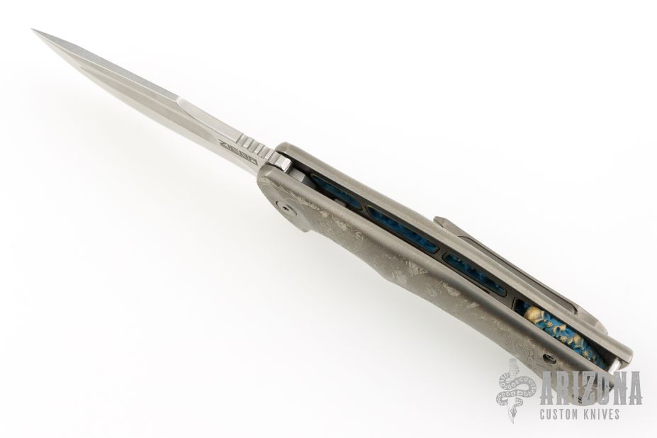 Jason’s early knives were created through the stock removal process. In 2001 he attended the Bill Moran School of Bladesmithing in Old Washington, Arkansas. Jason won Best New Maker at Blade Show West that same year. His work quickly became sought after because of his recognizable style. According to Jason, some of the most valuable input he ever received was from his friends George Herron and Daniel Winkler, both of whom encouraged him to always remain true to his own creative niche. In 2007 he received his ABS Mastersmith rating and was awarded the B.R. Hughes Award for the best knife by a Mastersmith candidate. He continues to receive awards for his extraordinary skill. Knight is well known among custom makers and collectors not only as an innovator, but also for his mastery of metallurgy and blade geometry.