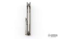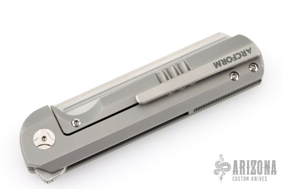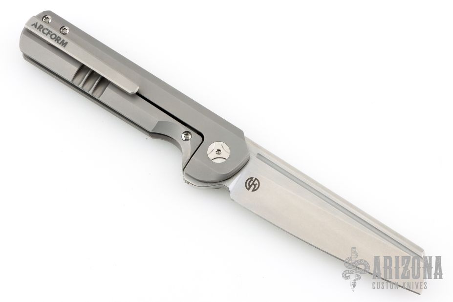 The Arcform Slimfoot is a fine-tuned flipper designed by Geoff Blauvelt with a clean, unified aesthetic and top-tier functionality. Its blade is made from premium CPM-S35VN stainless steel with a unique and practical profile geared for everyday utility. The Slimfoot's lightweight titanium frame lock handle offers a sleek and durable build for comfort in hand, and in the pocket. Understated jimping along the backspacer and flipper tab, and a slender tip-up pocket clip complete this impressive debut from Arcform Knives.