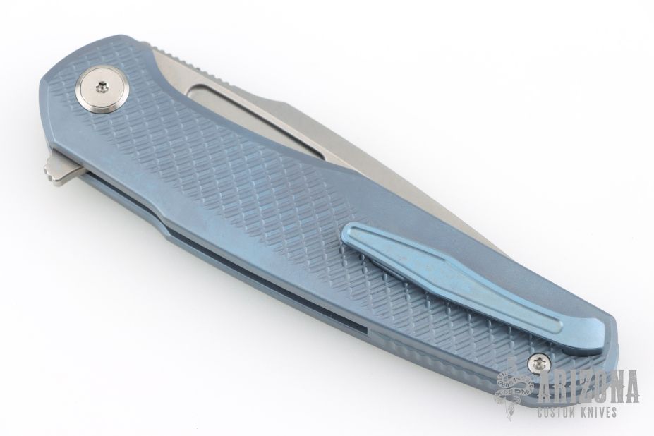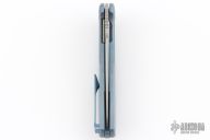 The Reyne design is one that embodies everything I enjoy about knives. Purposefully designed mechanics, aesthetic elements that compliment the overall shape, custom textured handles, aggressive yet elegant lines, crisp and smooth action. It comes equipped with a 3.57” long Magnacut blade, thick and intricately milled titanium handles, an inset titanium lock bar with steel insert, custom machined pocket clip and backspacer, deep internal milling, and more. The Reyne is not a design that is just slapped together and put on the market. It is the culmination of life long passion and commitment to create the best product I can.