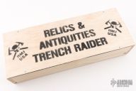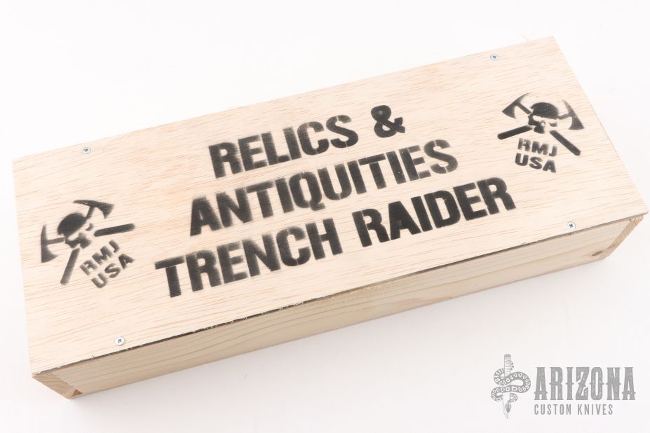 In The Box: Trench Raider, Sheath, Lighter, lanyard with bead, Trench Raider Playing Card, user documentation.