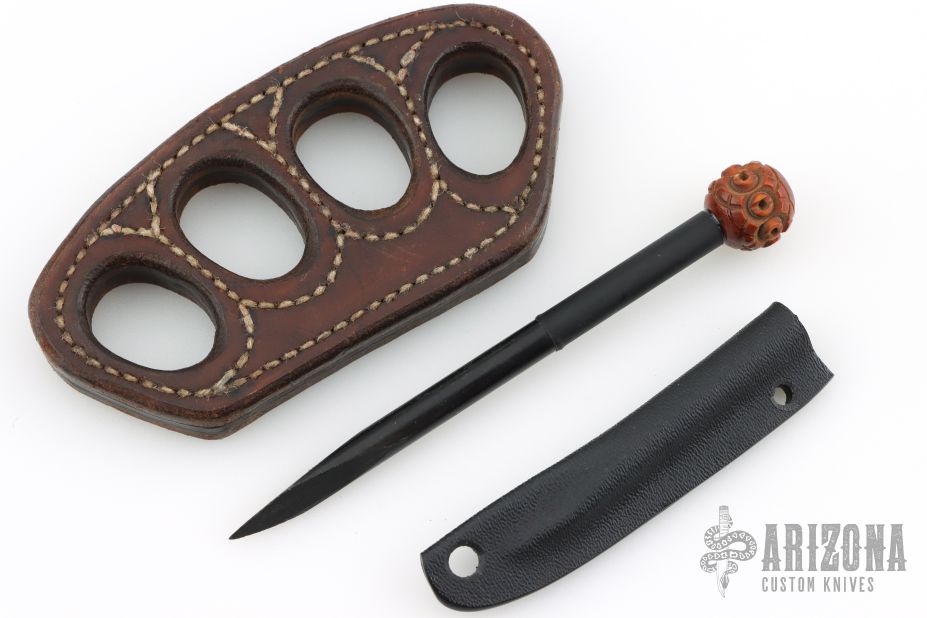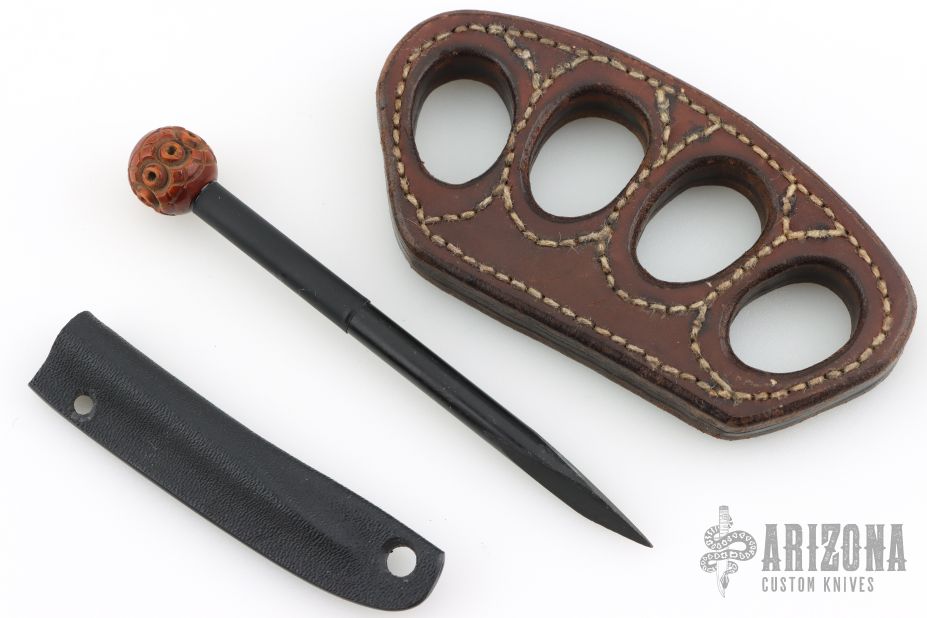 Leather knuckles by Fred Perrin. G10 spike with carved ball by Fred Perrin. New from maker!