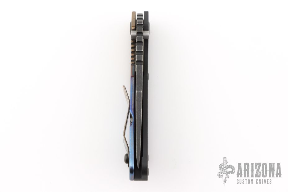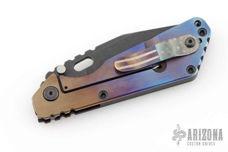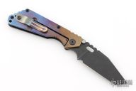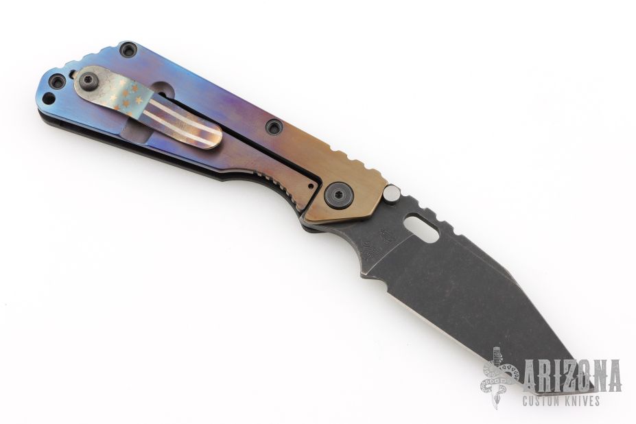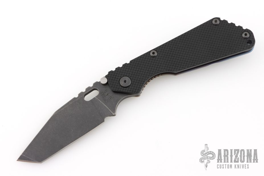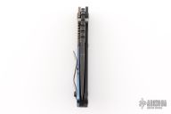 This SnG GenII by Strider features a black tanto blade and a black G-10 and anodized titanium handle and a Flag anodized titanium clip. Notches on thumbrest, rear of handle, and lockup. Nice detent, lockup and blade seating. Has a couple light scuffs, otherwise excellent condition for its age. #040 on the blade