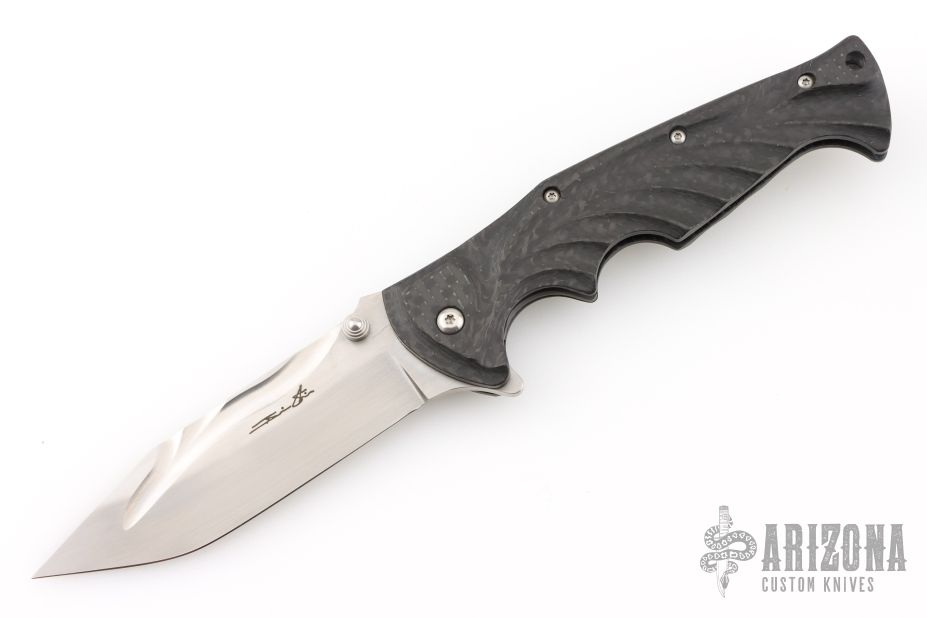Canadian knife veteran Brian Tighe has spent the last 40 years honing his skills as a quality knife maker, creating award-winning knives that are consistently recognized in the industry for their bold sense of design, impeccable craftsmanship and precision engineering. Brian Tighe specializes in custom folding tactical knives that combine high-tech materials with high-tech styling. Each blade is one-of-a-kind in style featuring original locks and steel designs known for their supreme functionality. All of Brian’s tactical blades are made with top-quality Titanium, Carbon Fiber, Damasteel and other top-quality Stainless Steels. He is currently working with “Glow in the Dark” Carbon Fiber as well as “Glow in the Dark” inlays in various composites. Brian’s knives have been featured in respected publications like BLADE magazine, Knives Illustrated, Tactical Knives and American Handgunner as well as in all four of David Darom’s books “The World of Art Knives”. Brian won “Most Innovative Design” at the 2010 and 2012 BLADE show. Beyond his custom knife work, Brian has worked on production collaborations with Columbia River Knife and Tool (CRKT) and Spyderco Knives. In June 2016, Brian launched his own line and business venture: Brian Tighe & Friends. BT&F specializes in bringing innovative and advanced technology to the mid-tech knife market making affordable, professional-grade folding knives, made in the USA and assembled by hand. In June 2017 at BLADE Show BT&F were awarded “Most Innovated Design” for the Tighe Breaker Integral Automatic the 1st of its kind.