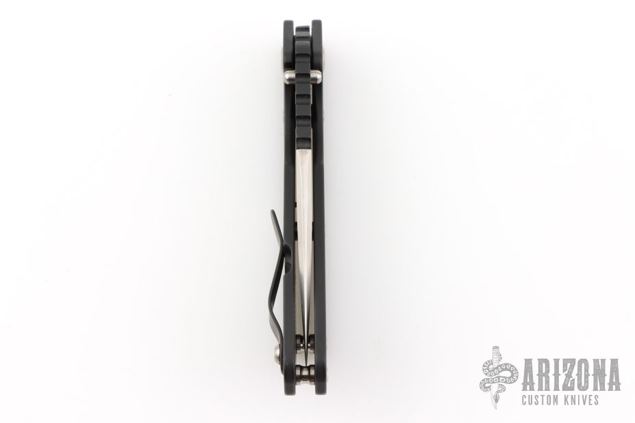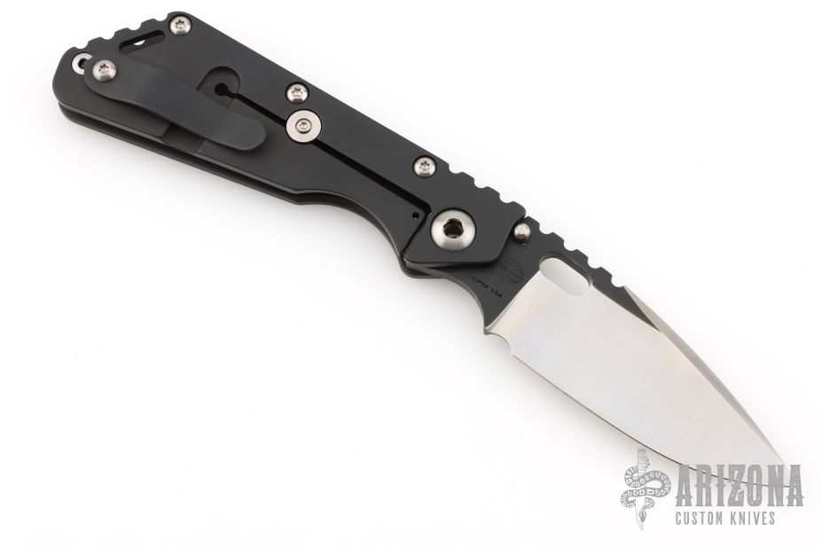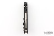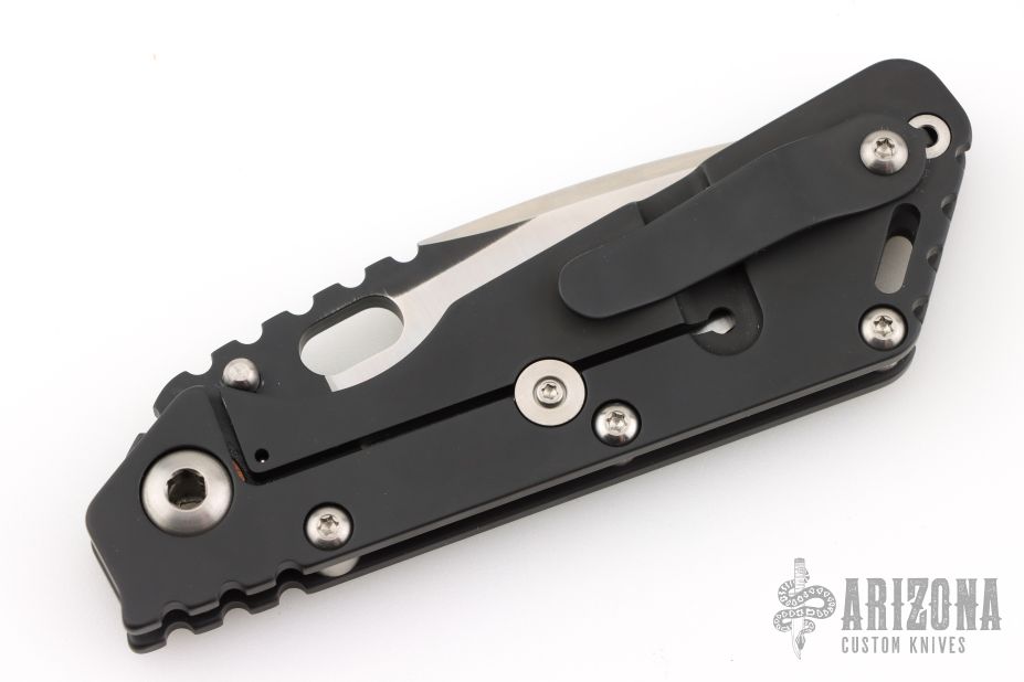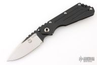 This Mick Strider Performance Series SMF framelock folder has been reground by Tom Krein. It features a satin finished spear point blade with thumbhole and notched thumbrest. The handle has a black titanium frame with titanium clip, tip up carry. Jimping on blade spine. Includes Hinderer "Lock Bar Stabilizer" for maximum reverse lock retention. Nice detent, lockup and blade seating. Has a couple light scuffs, otherwise excellent condition.