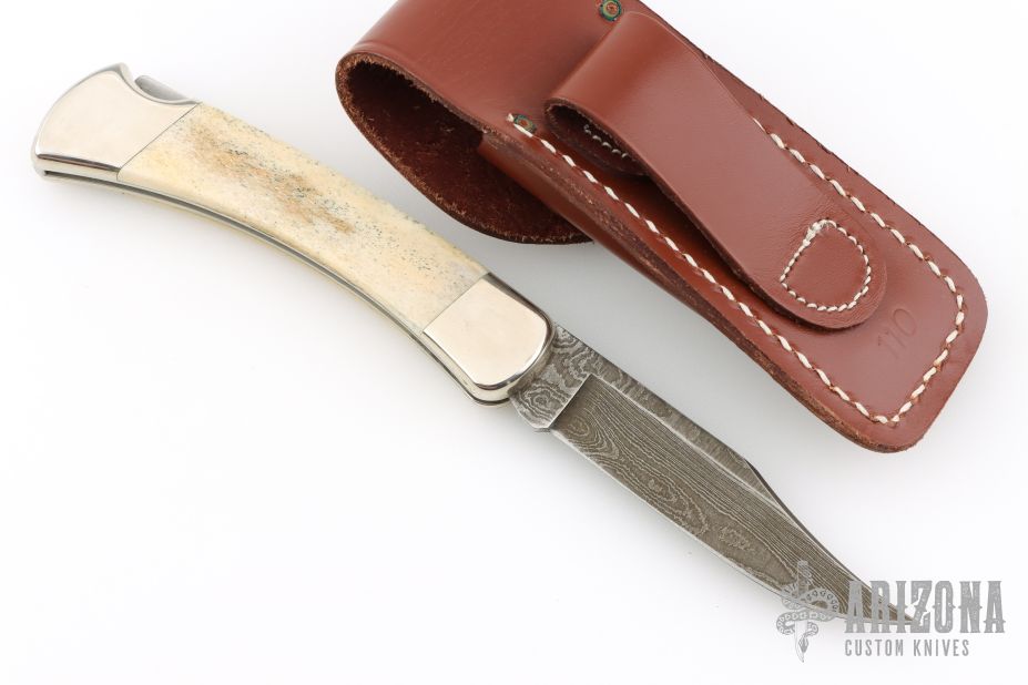 Model 110 Damascus/Stag Folding Hunter - 1990 Blade Show & Cutlery Fair 1of250