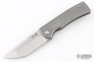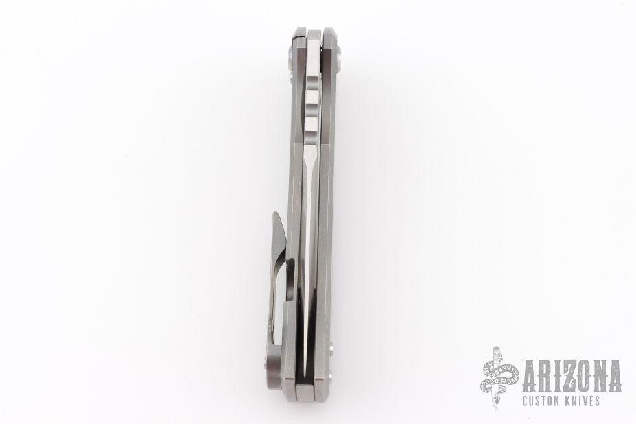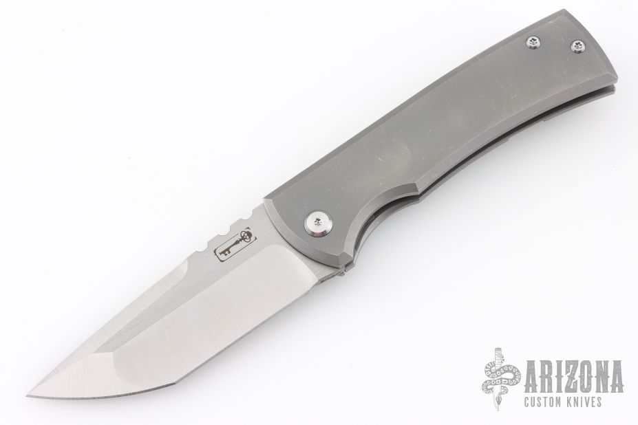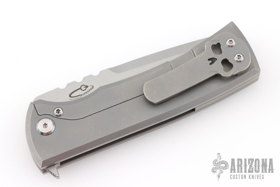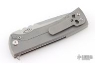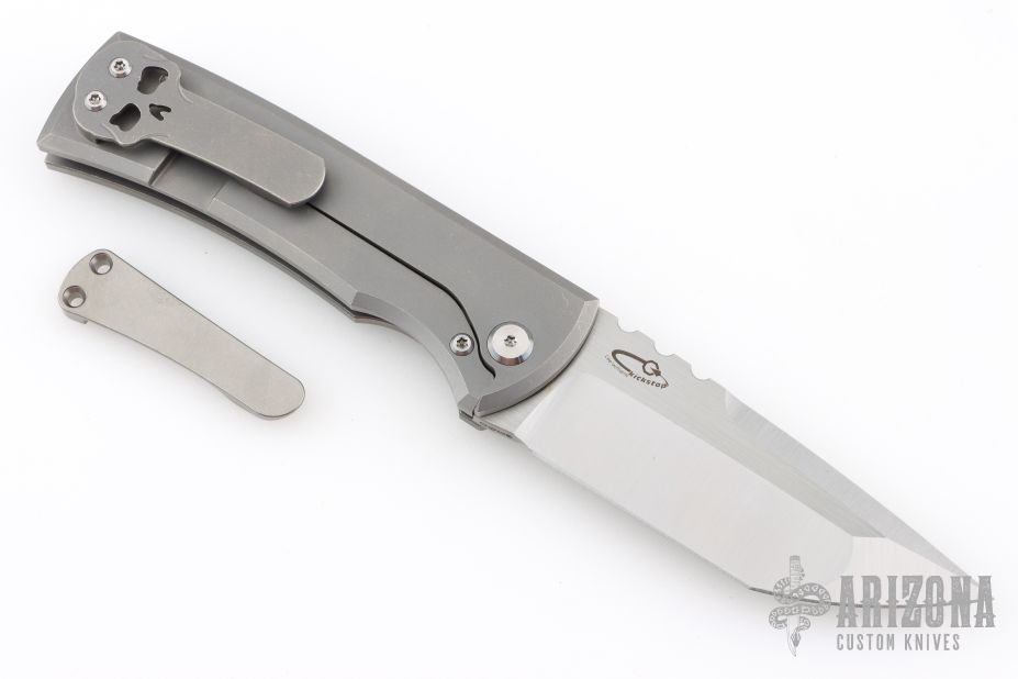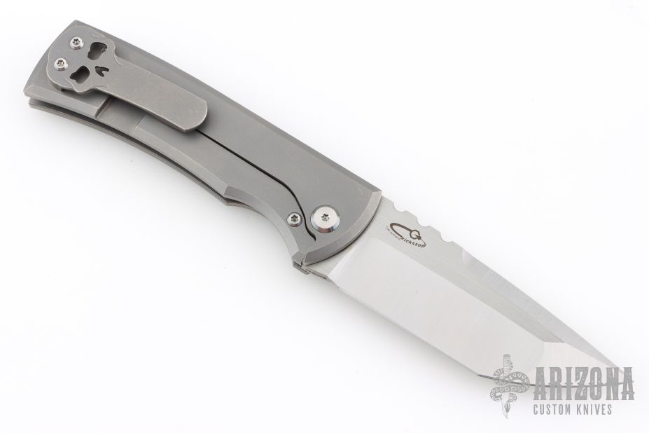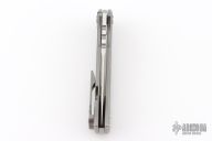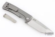 This Chaves Ultramar Redencion Tanto features a satin finished blade. The handle is made up of stonewashed titanium, skull pocket clip (positioned for tip up carry), and a matching titanium backspacer. Comes with original box and an extra regular titanium pocket clip. The knife opens with the use of Lee Williams' Kick Stop flipper.  Includes the original box and extra clip. Excellent condition.