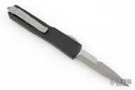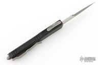 This knife from Microtech was the 2023 Blade Show Special. It has a double edged bayonet ground blade with an Apocalyptic finish. The handle is black frag pattern G-10 and black aluminum with a tip down Apocalyptic stainless clip and glass breaker at the butt. Comes with an original box and papers. Excellent condition. Dated 06/2023
