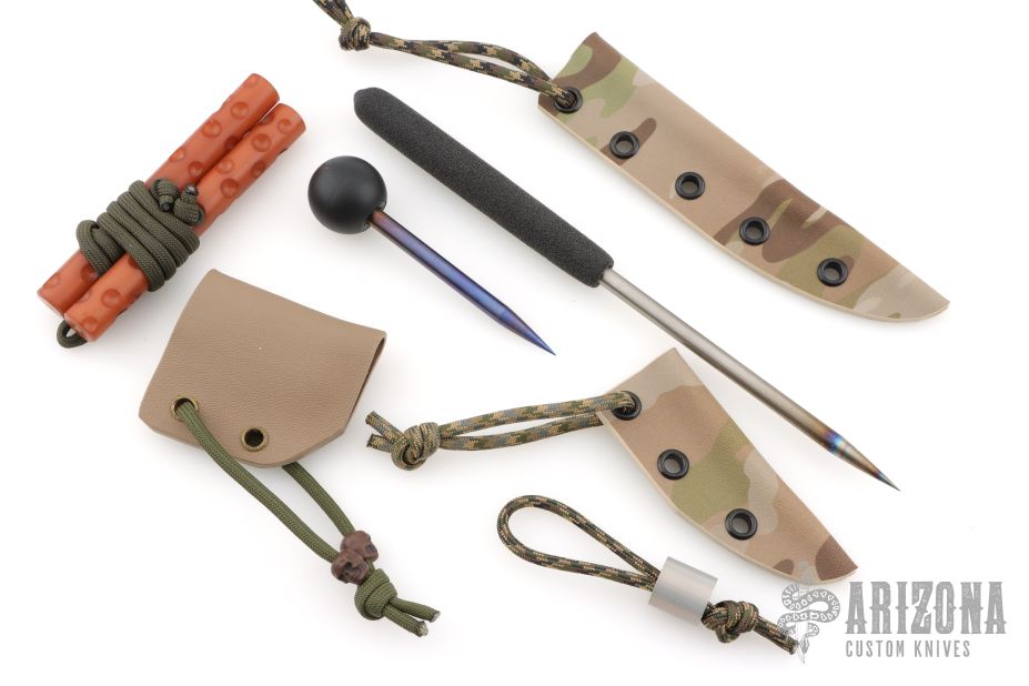 Ball Spike 1" Delrin Ball, 6AL-4V Titanium .25"x3" blue ano, Kydex sheath. (4" Overall)